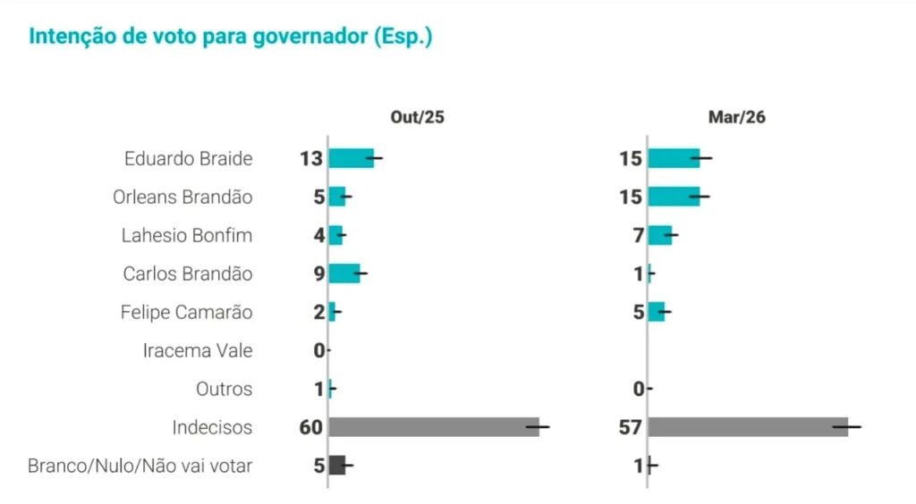 O dado bruto parece equilibrado: no cenário espontâneo, Eduardo Braide e Orleans Brandão aparecem empatados com 15%. À primeira vista, um sinal de competitividade. Mas é justamente aí que mora a armadilha da leitura superficial.